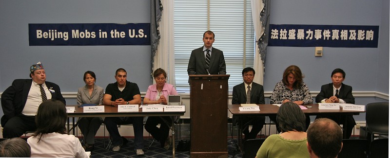 二零零八年六月九日下午,华府大.纪.元;在美国国会众议院瑞本大楼召开“法拉盛事件真相及影响”新闻发布会,邀请国会议员办公室、退!党!服务中心、追查迫害法轮功国际组织、人权律师、美国退伍军人组织以及受害者代表,全面揭露中共在周永康的策划下,为转嫁中国国内危机,转移视线,从国内到海外配合式构陷法轮功,继续制造谎言煽动中国民众和海外华人对法轮功的仇恨。中共阴谋构陷法轮功的种种招数在美国国会曝光。