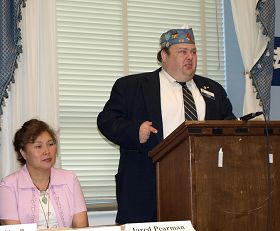 美国军团之子(Sons of the American Legion)司令奇普•拜尔斯(CHIP BYERS)说,“我们通常不会在这样的场合出来讲话,但是我们看到陈女士,当她的儿子保卫这个国家,一个外国政府的特务们却在攻击他的母亲,这个事件触动了我们,我们决对不能接受。这些特务们袭击的是为国服务的两位英雄的母亲。”