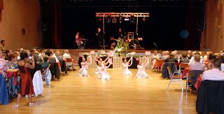 ![]() 与会的运动员聚精会神的观赏法轮功学员表演的传统中国舞蹈 |