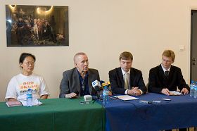 ![]() 记者招待会现场,从左至右分别为:张茜、波兰国会议员安杰•珠马先生(Andrzej Czuma)、国际人权协会波兰代表 叶科耶勒珂(Jekielek)先生、法轮大法协会发言人马勤 克拉巴先生(Marcin Klebba)。 |