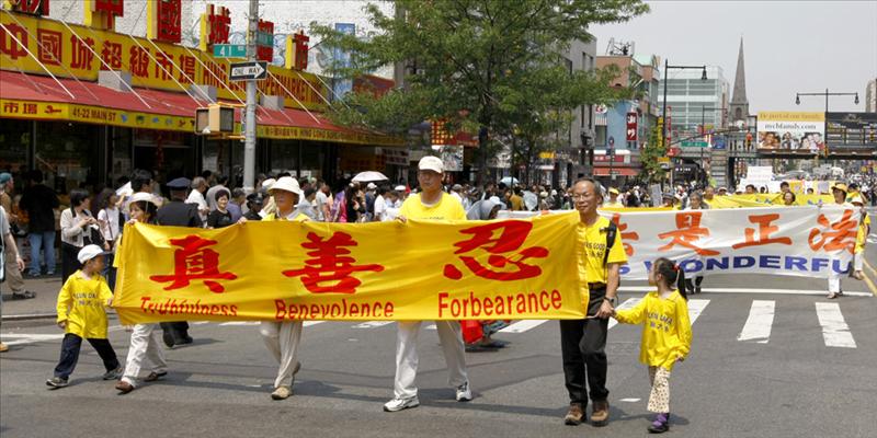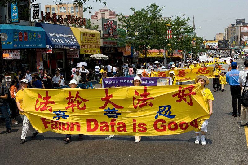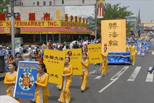 盛大的游行向民众展示了法轮大法洪传世界的历程,遵循“真、善、忍”法理的修炼者身心受益,道德升华,面对中共长达九年灭绝人性的迫害,法轮功学员坚忍不屈,坚持不懈的向民众讲真相。法轮功在海外获得了超过一千项褒奖与支持议案,据统计,到二零零七年五月十三日止,其他法轮功书籍已经被翻译成三十多种语言在世界各地发行;全世界有大约一百一十个法轮功网站,法轮大法洪传八十多个国家和地区。