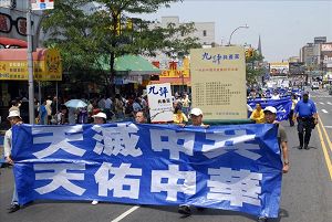 !服务中心在纽约法拉盛举行了盛大的“法轮功反大游行”和“声援中国民众退