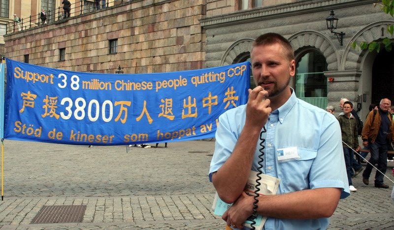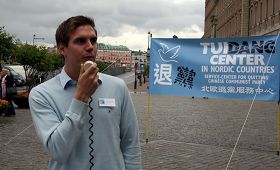 瑞典退!党!服务中心主席尤根(Jorgen)最后表示:“帮助中国人退出共产党及其它的相关组织,这是个全球性的活动。我们会继续努力的最好,让更多的中国人认清中共邪恶的本质,早日脱离这个邪恶!”