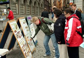 到下午四点钟活动结束时,所有的中文资料都发放完毕,今天除了中文的资料还发放很多瑞典文、英文及各种文本的《·九·评*共产党》等资料。虽然冒着雨大家很辛苦,但看到又有那么多的人认清了中共的邪恶,明白了真相,大家都感到十分的欣慰!