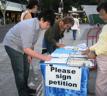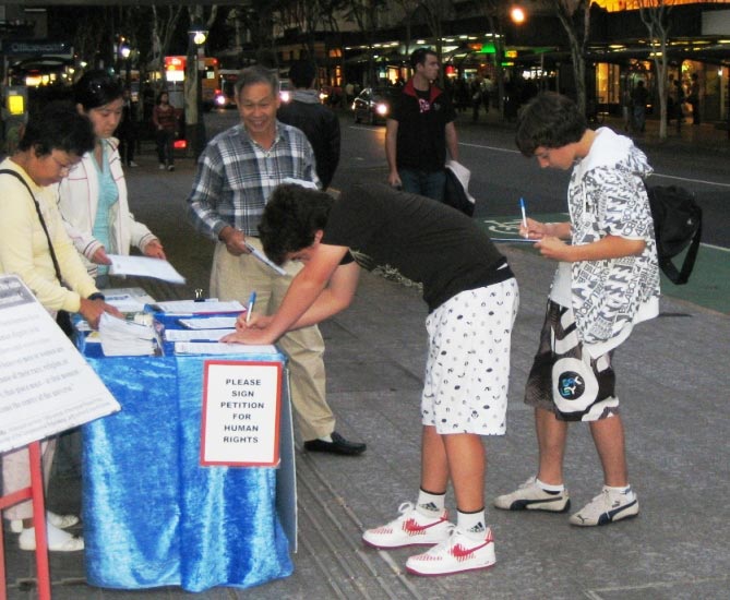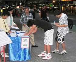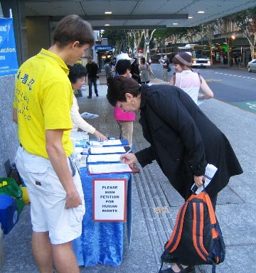此外,不少中国留学生也主动前来了解法轮功真相,并索取《·九·评*共产党》、真相光盘及资料等。一位女学生表示,能在澳洲遇见法轮功学员真是幸运,她表示会好好了解真相,并希望阅读《转法轮》一书。