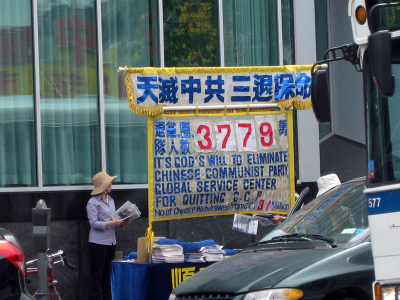 六月三日,在当地民众的声援、警察局的支持和保护下,退!党!服务站又回到法拉盛图书馆前,并增设另外四个退!党!服务站