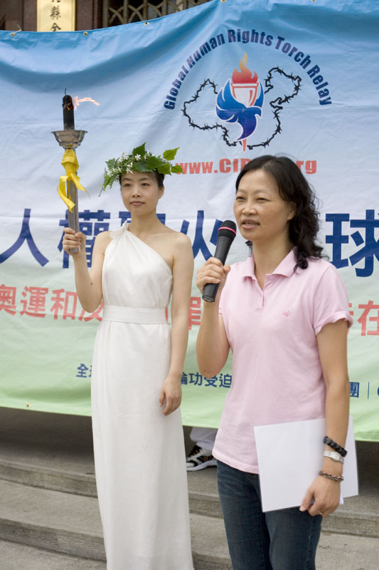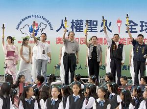 ![]() 由法轮功受迫害真相联合调查团(CIPFG)发起的“人权圣火”活动,六月初来到台湾展开二十三县市的圣火路跑活动,十五日来到在台最后一站台北县 |