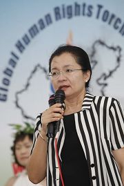 CIPFG亚洲分团代表田秋堇立法委员首先在记者会中昭告世人:“违反人权普世价值的事情和奥运是不能并存的。”