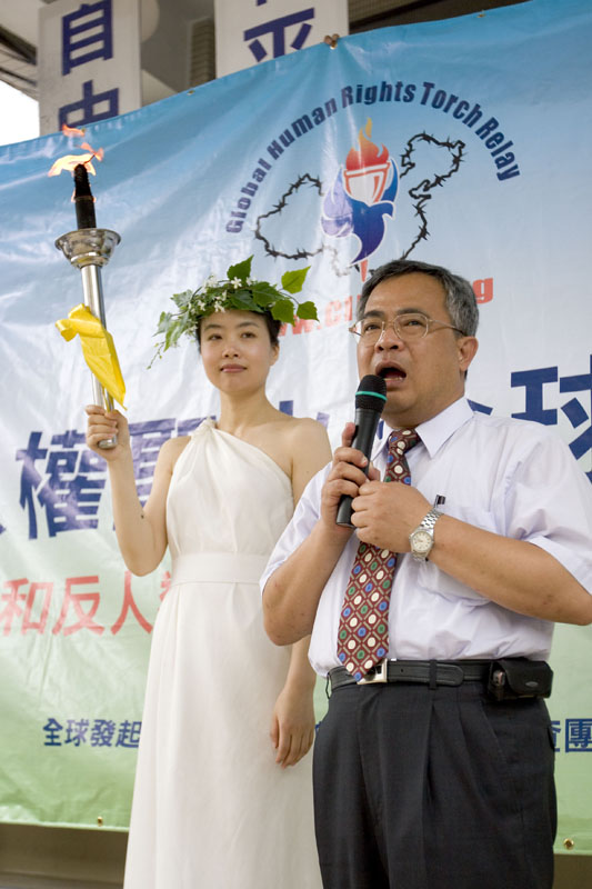![]() 树林市市长陈世荣亲自迎接人权圣火 |