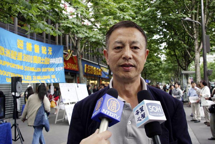 来自中国沈阳的巴黎华人曹先生当场声明退出中共邪*党-附属组织,他说:“对退!党!退*队-退*团-三:退.问题我非常赞成。我小的时候是少先队,那么,借今天这个大好时机,我就把我的少先队先退了。大批的党团员少先队三:退.,这个事情是个好事情,那么早退早好。中共邪*党-对百姓欺压,当官腐败,所以说,从现在中国大陆的形势来看,领导有权有势的发大财,平民百姓受穷,从我个人的经历,我以前观察和看到的,有很多事实说明了这个问题。”