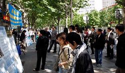 在这次活动中,法轮功学员播放了纽约中领馆操控收买地痞、流氓攻击纽约法拉盛退!党!服务中心事件和中共为迫害法轮功而导演的天安门自焚事件的真相录像。许多过往华人驻足观看,有不少人聚精会神的从头看到尾,在事实真相面前,中共的谎言宣传不攻自破。