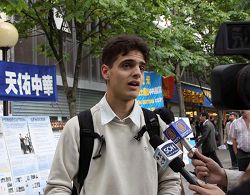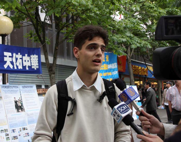 ![]() 法国学生格雷戈里·飞柴特:让中国人了解迫害真相是很重要的。 |