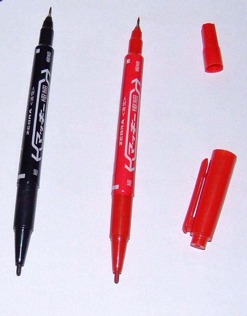 最近发现用油性笔往上写效果很好,这种油性笔一般是用来往光盘上写标签用的,写上后擦不掉,而且很清楚。这种笔在电脑城或卖空白光盘处一般都有卖的,并且一般是一个粗头一个细头。我买的这种笔的细头跟碳素笔差不多,所以字可以写得小一些。一般有红、黑、蓝三个颜色,价格在2块钱左右。