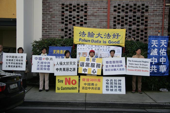 ![]() 在悉尼中领馆前曝光中共暴行,抗议中共构陷法轮功 |