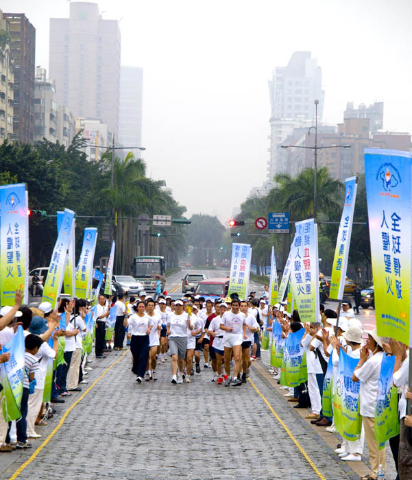 ![]() 立法委员蔡同荣实际参与人权圣火的路跑(右一) |