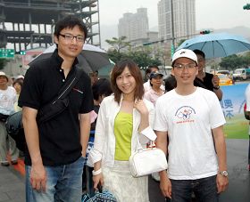 台湾艺术大学的张同学表示:“我有订阅《大.纪.元;时报》,今天是透过大.纪.元;网站得知这个消息,就邀女友一同参与人权圣火传递的游行。上一次的刚开始开跑传递人权活动我也参加,不愿错过每次见证历史的机会。”