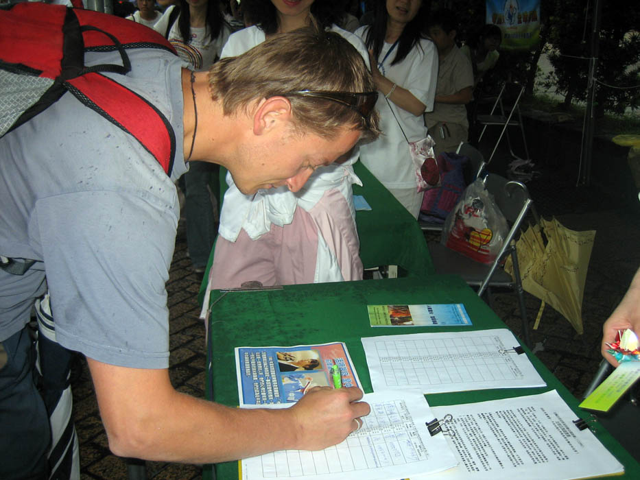 ![]() 从南斯拉夫来台湾旅游的游客,在了解活动的意义后,签名呼吁立即制止中共迫害法轮功。 |