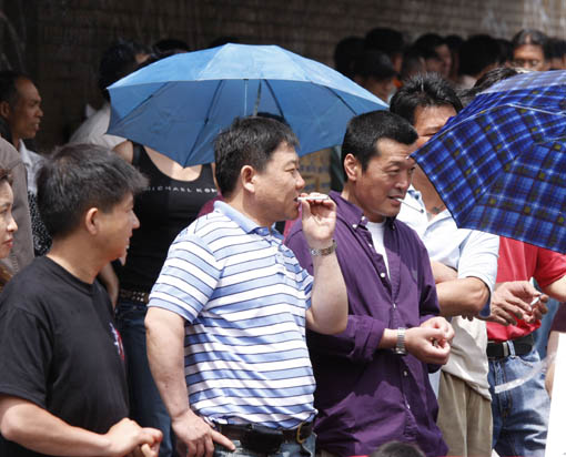 我们再来看看中共喉舌媒体中出现的所谓“赈灾募捐的爱国者”们是怎样说的,《大.纪.元;时报》三十一日报道,法轮功学员张先生告诉记者,有亲共分子对他说,他们“也不在乎信仰不信仰的”,“在美国打工也不容易,要是你们法轮功给的钱比他们(领馆)多,我们立马就站到你们那边,帮你们喊。”不少在场的帮凶都承认是“看钱份上”才来的,一位帮凶说:“这年头,没有钱谁会来做?”这些人中还有其他肤色的人,有黑人和中东人。
