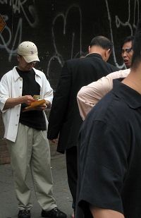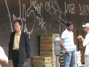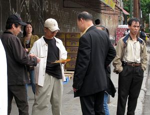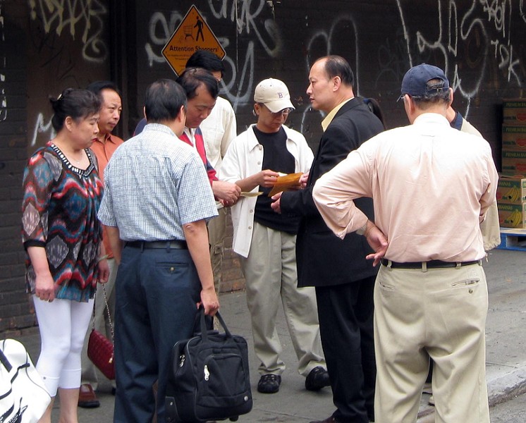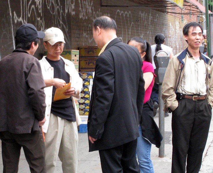 据法拉盛知情法轮功学员在骚乱现场,有人声称给参与的人员一个人九十美金。从五月二十一日不法分子对法轮功学员暴力攻击开始到现在已经有十天了。据现场的法轮功学员证实每天都有少则近百名,多则数百人的骚乱分子连续干扰法轮功学员的退!党!服务活动、游行和其他活动。有许多不法分子显然是从外地被雇来的。