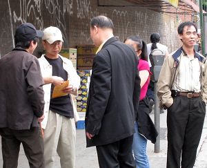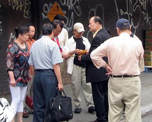 下面一组图片揭示了法拉盛街头中共帮凶领赏的过程。