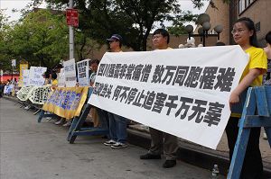 居住在法拉盛的杨先生于三年多之前从中国大陆来到美国,六月一日这天他专门来到法拉盛退!党!中心集会点,表达他对法轮功学员所展现的和平、坚韧精神的敬佩。