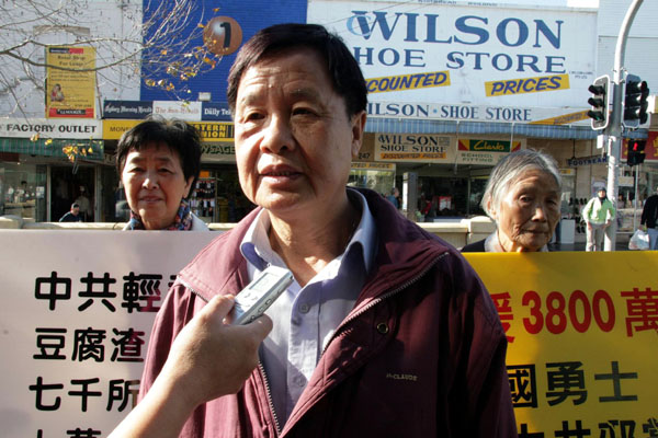 他继续说:退!党!服务中心是和平的、非暴力的一个机构,给中国人民退出中共、不给中共陪葬提供了一个保护的渠道,大家可以踊跃退!党!。法拉盛事件发生后,悉尼退!党!服务中心顺应天意,即将在悉尼的许多华人居住区成立退!党!服务站。今天是开木西区(Campsie)退!党!服务站正式成立,为广大民众提供了一个退!党!渠道。我们大家都是义工,义务为大家服务。中共造谣说我们领工资,但我们就是义工,没有从谁那领过一分钱,都是我们自己掏腰包,印资料,义务为大家服务。为中国人民脱离中共、免受中共邪灵的威胁和恐惧提供这样一个渠道。