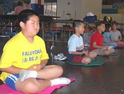 ![]() 小路易(左一)在明慧学校和其他小朋友一起炼法轮功。 |
