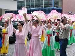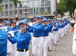法轮大法协会的游行方阵内容丰富,包括天国乐团、法轮功功法演示、中国传统舞蹈等,还有一个方阵揭露了中共对法轮大法长达九年的残酷迫害。沿途的观众们报以热烈的掌声,无论记者还是普通市民都纷纷举起相机,希望留下这精彩的画面。