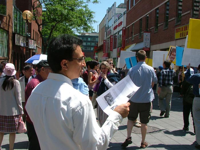 今天特意从魁北克赶来参加活动的玛瑞女士向记者谈了她的感受,她说:“今天游行走第一圈的时候,人们连头都不抬;走第二圈的时候,人们总算抬头看一下了;走第三圈的时候人们开始接真相资料,所以我们应该更加努力,用更大的声音唤醒这里的人们。”