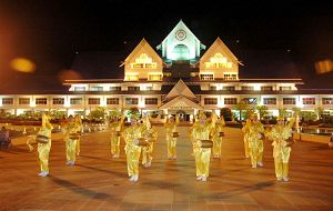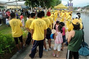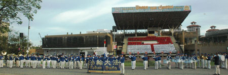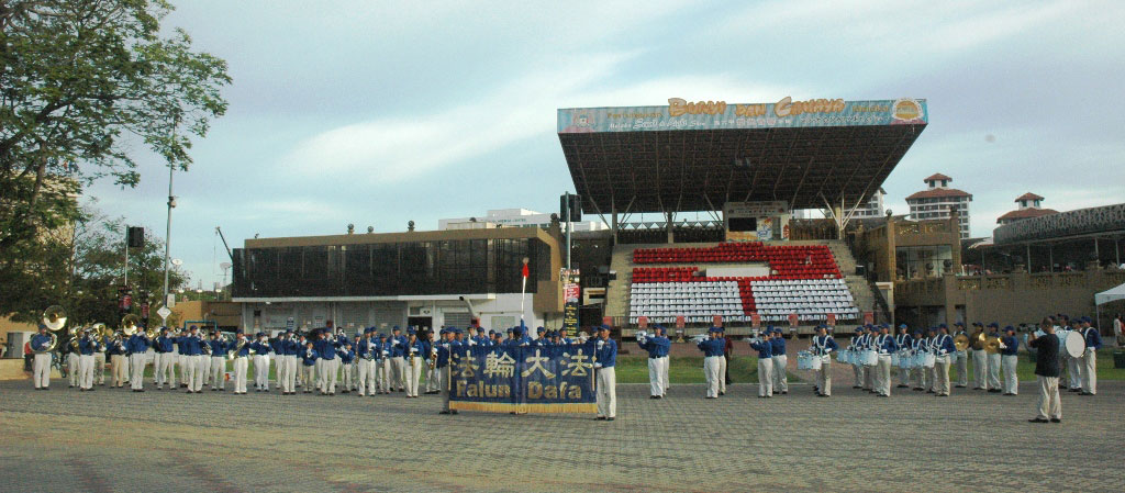 ![]() 马国法轮功学员成立的天国乐团首次与新加坡天国乐团合成百人队伍。 |