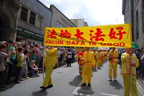 ![]() 潘冉斯仲夏艺术节大游行中的法轮功队伍 |