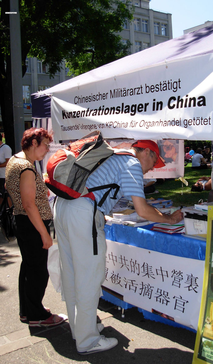 对于法轮功学员而言,几年来,这样的信息摊位差不多每个月都会出现在苏黎世这条著名的购物大街上。有的路人已经了解这是法轮功的信息摊位,还向其他的人讲解,但还是有很多路人是第一次听说法轮功以及中共的这场迫害。