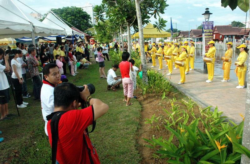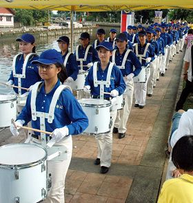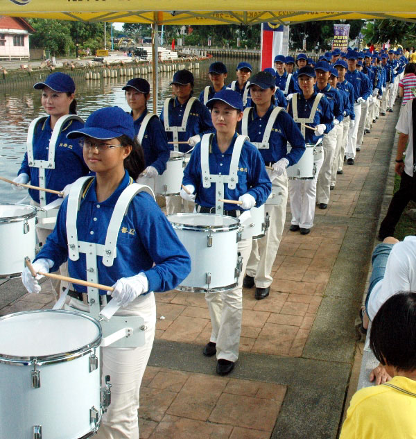 ![]() 新加坡法轮功学员成立的腰鼓队表演腰鼓舞 |