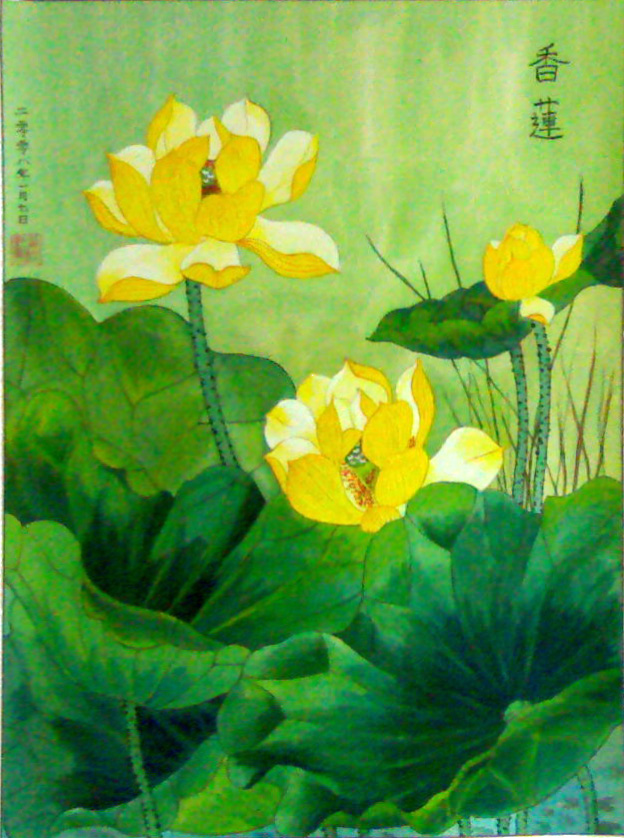 国画:香莲、牡丹