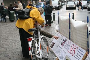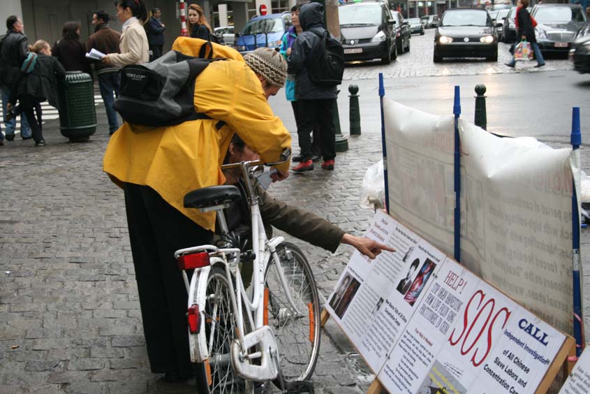 安吉奈斯女士(Agnes)是一位比利时的时装设计师,她路过这里,看到了法轮功学员受迫害的展板,特别是中共活摘法轮功学员器官牟利的暴行后,向退!党!中心义工表示,她相信这是真实发生的,就在几天前她从一家法国电台FranceInter上听到了对中共摘取、贩卖死刑犯的器官调查的消息。她特意要了很多真相传单,准备去发给很多她认识的人。