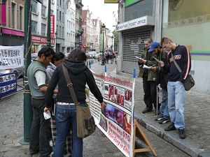 活动组织者之一、比利时退!党!服务中心义工潘女士表示,“这次举办传·九·评*、促三:退.的活动,声援三千八百万中国人三:退.,对中华民族是非常有意义的,同时也让中国国内的正义之士知道有海外的支持。通过《·九·评*共产党》,使得很多的中国人都能认清中共的本质。在中共统治下,有八千万中国人非正常死亡,尤其最近这次四川强震,中共明知地震的预测,却知情不报而造成更多的中国人无辜失去生命。”