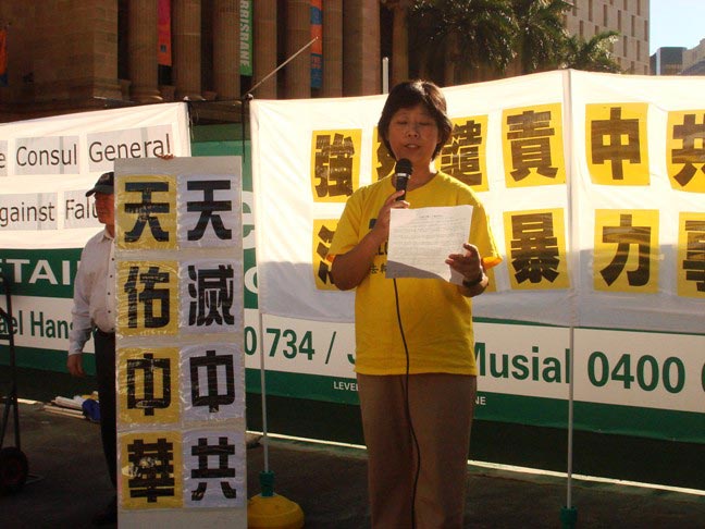 特地从阳光海岸驱车两个小时前来参与活动的法轮功学员阿曼达(Amanda)表示,人们必须制止中共的暴行,否则将会影响全世界。她说:“我从一九九九年起就开始关注法轮功在中国遭受中共迫害的情况,他们所遭遇的一切彻底的令人惊骇,而身为居住在自由国家的西方人,我感到自己有责任站出来反对在中国正在发生的反人类罪行。另外,最近在纽约法拉盛所发生的暴力围攻事件,反映出中共现在不只迫害中国境内的民众,也把黑手伸到了海外的民主国家。我感到如果自己不站出来反对这些可怕的暴行,它将影响到全世界的人。”