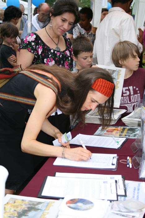 更多人了解了真相之后,在“法轮功受迫害真相联合调查团”的停止迫害征签表上签名,呼吁在奥运前制止中共对法轮功的迫害。整个下午共征集到了七百多个签名。