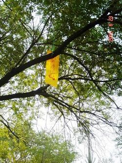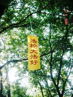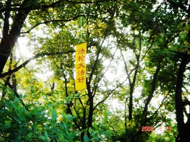 【明慧网二零零八年七月一日】在中国北方某大城市的公园、休闲广场、树林小道两边出现大量的写着“法轮大法好”和“真善忍好”的真相条幅,震撼了世人,解体了邪恶。