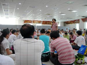 二十九日下午,在云林水利会大楼進行大组交流,约六百位学员齐聚一堂,在集体学法之后,大家互相谈心得体会,谈证实法中在法上的认识、心性的提升等等。大家发言踊跃,听到老年同修由不识字到会自己学法進而积极讲真相坚持不懈的过程,有同修表示感到汗颜,在交流中找到差距,突破观念,促使自己加紧脚步跟上正法進程。