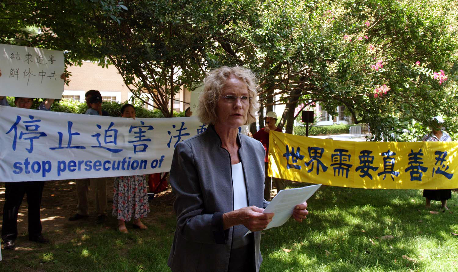 陶女士呼吁美国政府、正义的团体及善良的人们帮助结束长达九年的对法轮功的迫害。