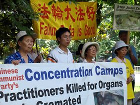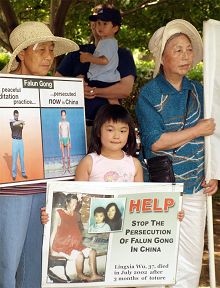 ![]() 华盛顿法轮功学员在中共使馆前要求停止迫害 |