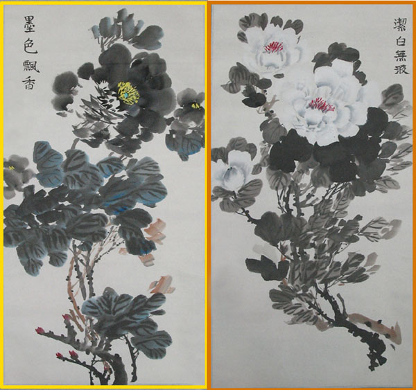 大陆大法小弟子绘画:黑白牡丹组合