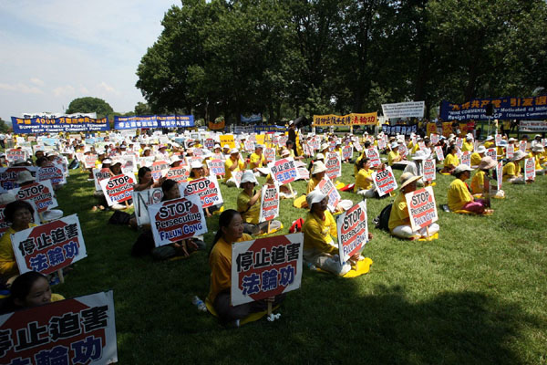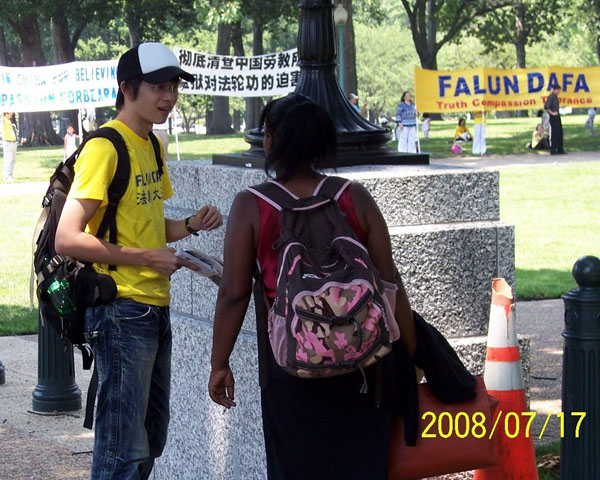 二零零八年七月十七日,法轮大法佛学会、美国自由之家、法轮功之友联合在美国首都华盛顿的上参议院公园(Upper Senate Park)举行了以 “结束中共对法轮功的九年迫害”为主题的大型活动。