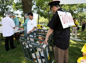 ![]() 集会现场,揭露中共迫害的酷刑模拟演示 |