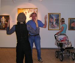 当地两家报社的记者到场采访。参观者络绎不绝,人们通过美术展了解了法轮功真相。有的观众非常喜欢画作,提出要购买几幅放在家里;有的看到了法轮功的美好,当场向法轮功学员学习功法。