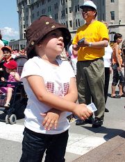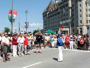 国庆节是首都渥太华居民最盛大的节日之一,七月一日的国会山前人如潮涌。这一天也是各族裔及艺术团体展示自己才艺的机会。自二零零零年以来,当地的法轮功学员每年都会通过不同的方式向人们讲真相、传递法轮大法的美好。