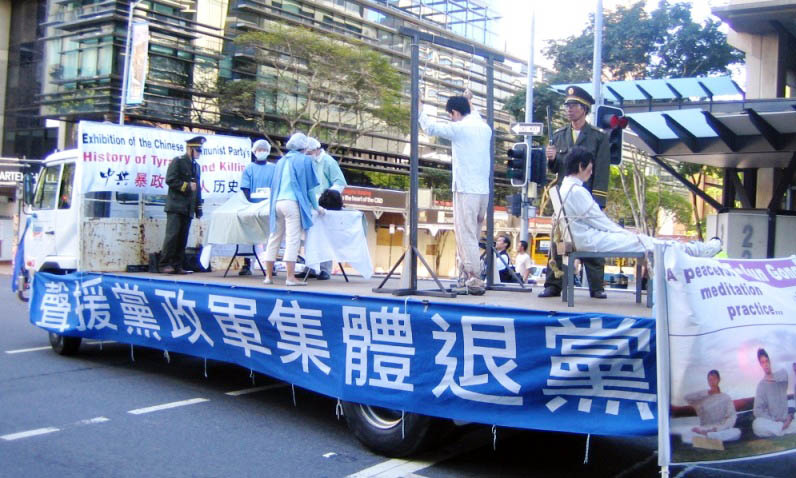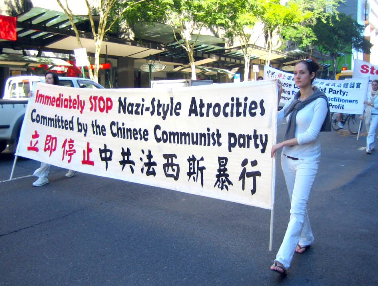 继七月十八日在布里斯本市中心中领馆前举行的烛光悼念活动引起澳洲民众的关注后,昆士兰法轮功学员又于十九日来到了布里斯本广场(Brisbane Square)进行集会和游行。