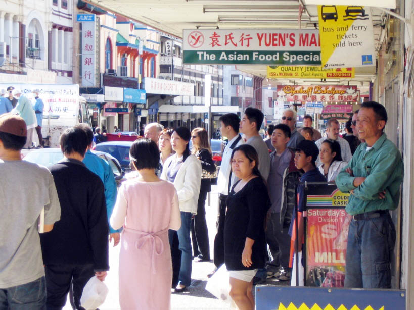 ![]() 中国城围观的民众 |