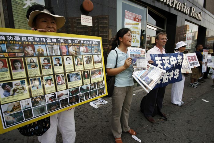 法轮功学员向人们介绍了自一九九九年七•二零以来的九年中,中共是如何残酷迫害信仰“真善忍”的法轮功修炼者的,并且希望人们能够帮助制止这种群体灭绝罪行。
